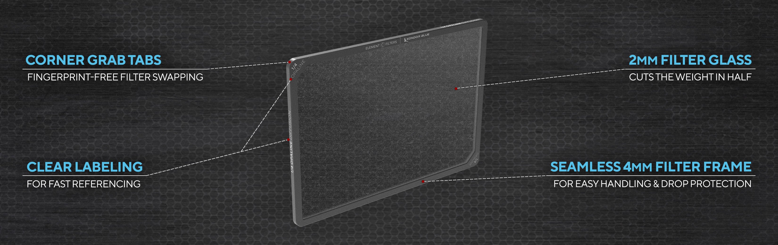 In classic KONDOR BLUE fashion, as opposed to starting our own line of filters, we’ve opted to collab with Element Filters to bring their diffusion recipe to the market but in a new light, using all-new ultra slim 2mm filters housed in a premium aluminum enclosure. This enclosure is screw free, so there aren’t any unwanted seam lines, weight or spots for gunk to build up. We’ve even added these small corner indents for both filter labeling and finger print-free handling when swapping filters.