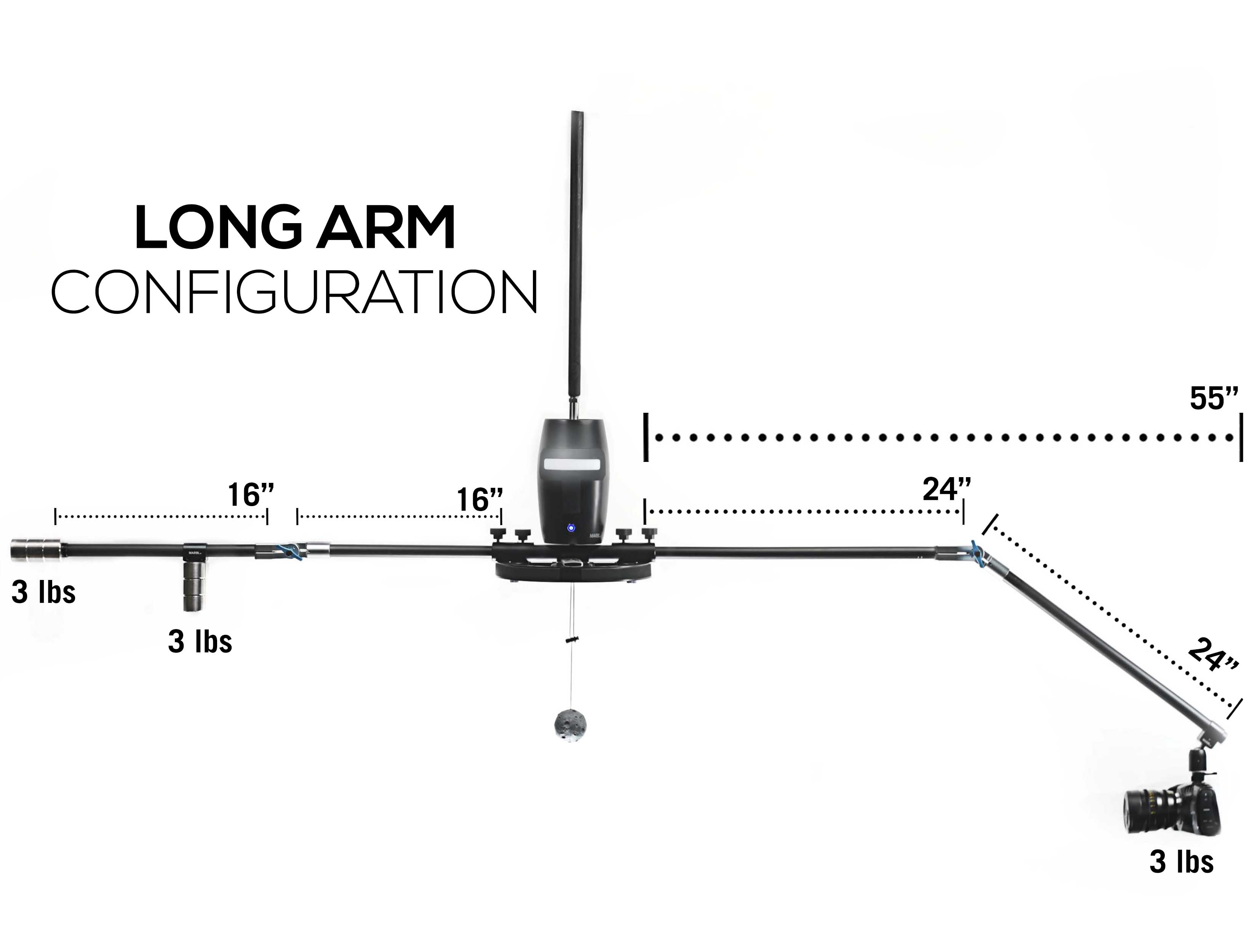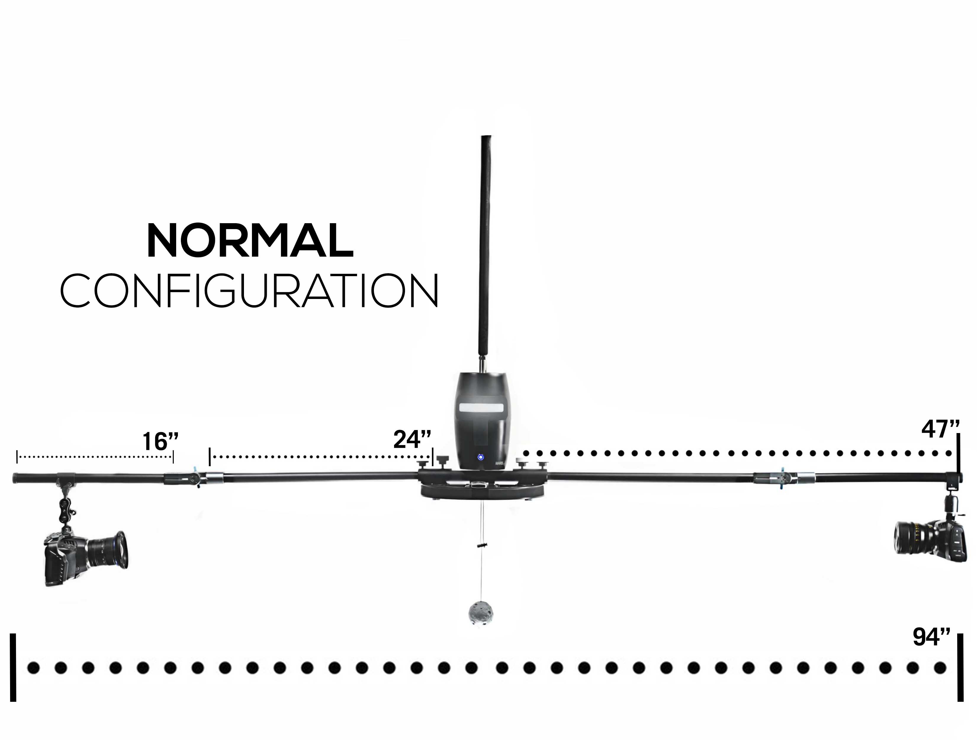 smooth 360 ̊ videos around subjects large or small with just a touch of a button. The system can be mounted indoors or outdoors with the help of a ceiling mount or speed rails. The Wi-Fi app or included IR remote control can be used to activate wiper motions, change orbit speeds, time-lapse, and stop-motion.
