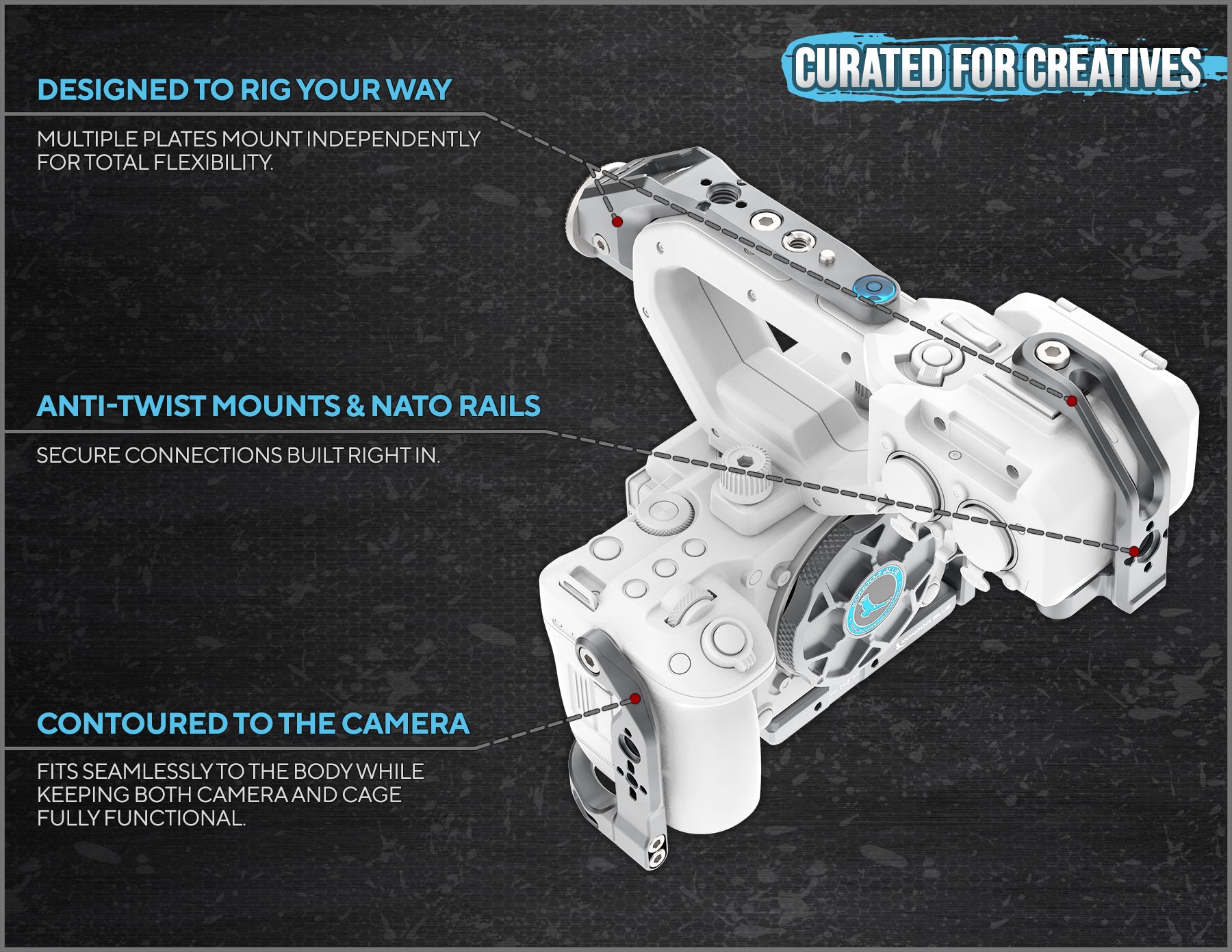 The Canon C50 Cage by KONDOR BLUE is a modular, streamlined system built to give you the exact rig you need and nothing you don’t. Designed with multiple feature-packed plates, this cage adapts to any shooting style, from minimalist handheld setups to fully loaded production rigs.