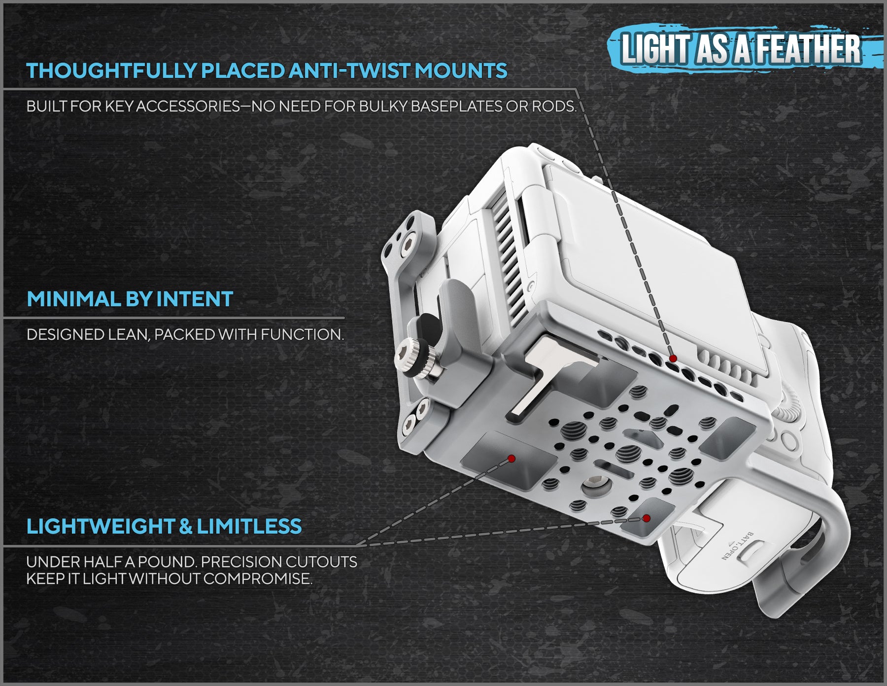 This isn’t just a cage—it’s a platform. Every plate is carefully engineered to expand your C50 without weighing it down. Whether you’re rigging for run-and-gun doc work, narrative production, or commercial shooting, the C50 Cage keeps your build tight, modular, and production-ready.