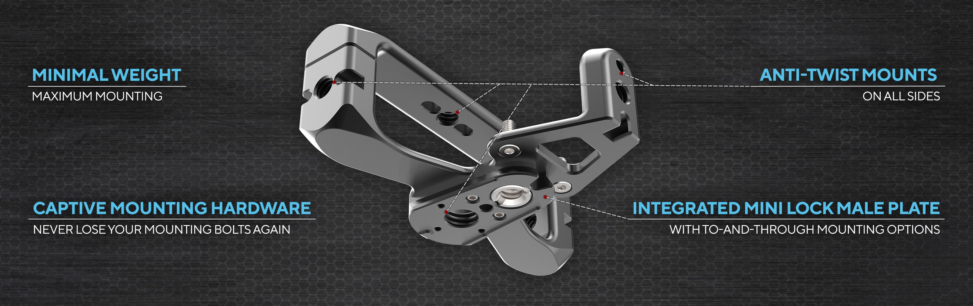 - Integrated KONDOR BLUE Mini Lock Male Plate for quick-release mounting options