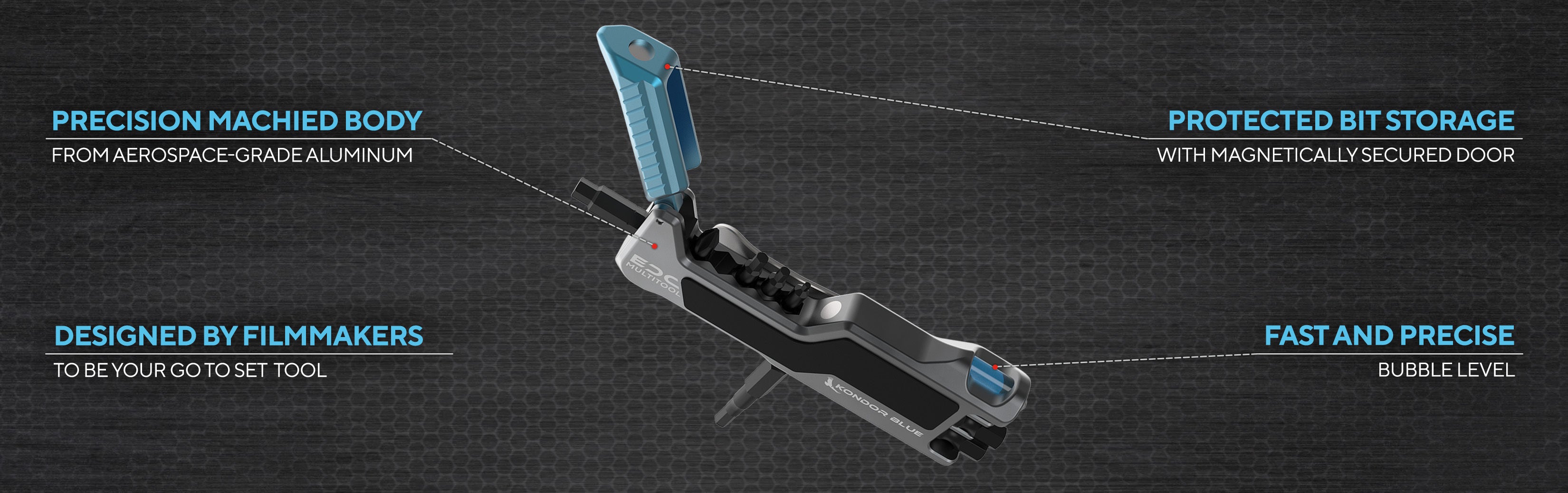 Who doesn’t love a good camera multi-tool? In our years of prepping on and off set, we’ve used the gamut of tools and been left wanting. Have you ever fallen in love with a tool only to have an essential bit strip or break? Or is a critical tool not included causing you to have to carry multiple…multi-tools? Ya, it got annoying for us too so we set out to make one tool system to be the EDC (Everyday Carry) Multi-Tool.