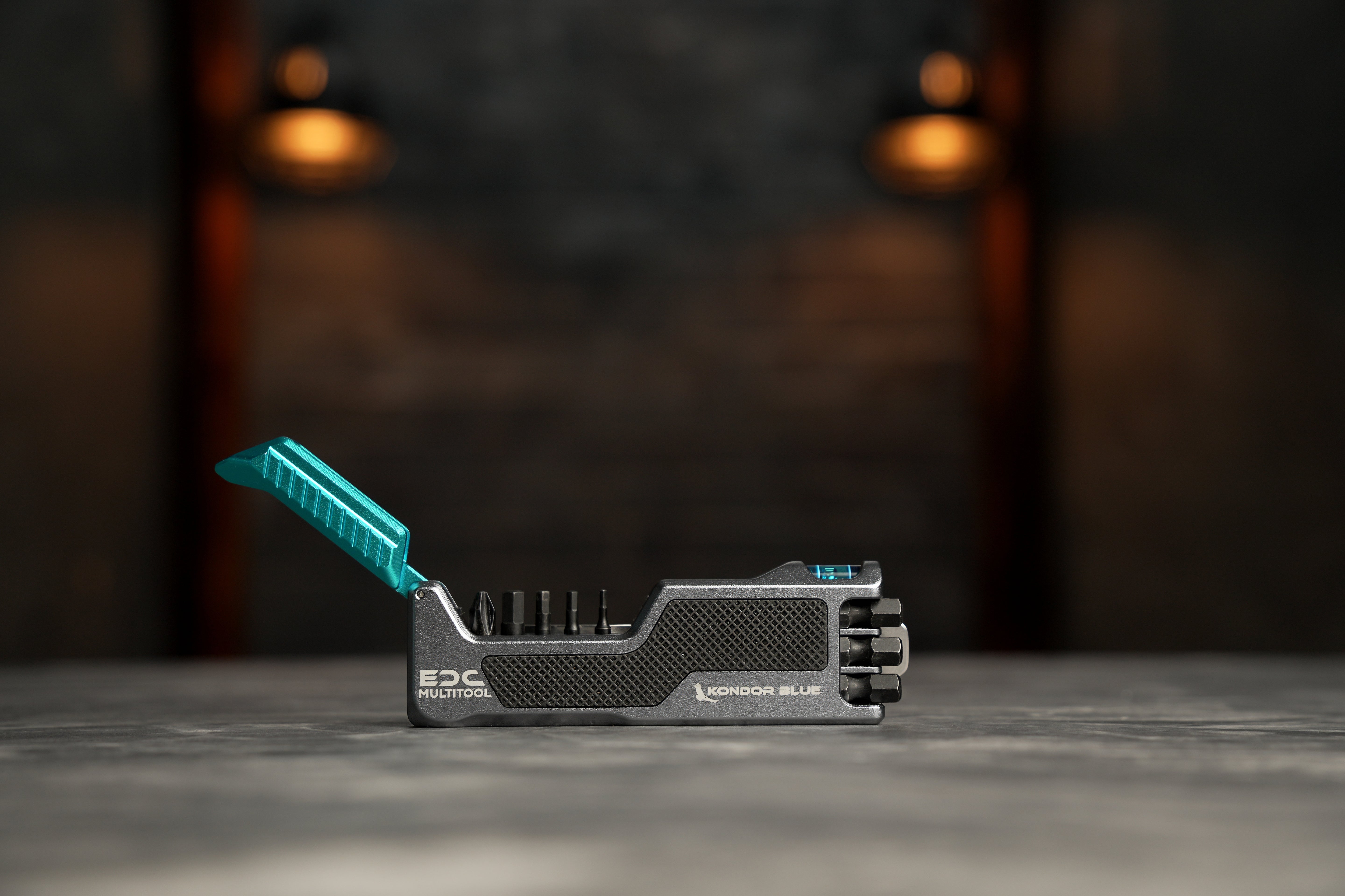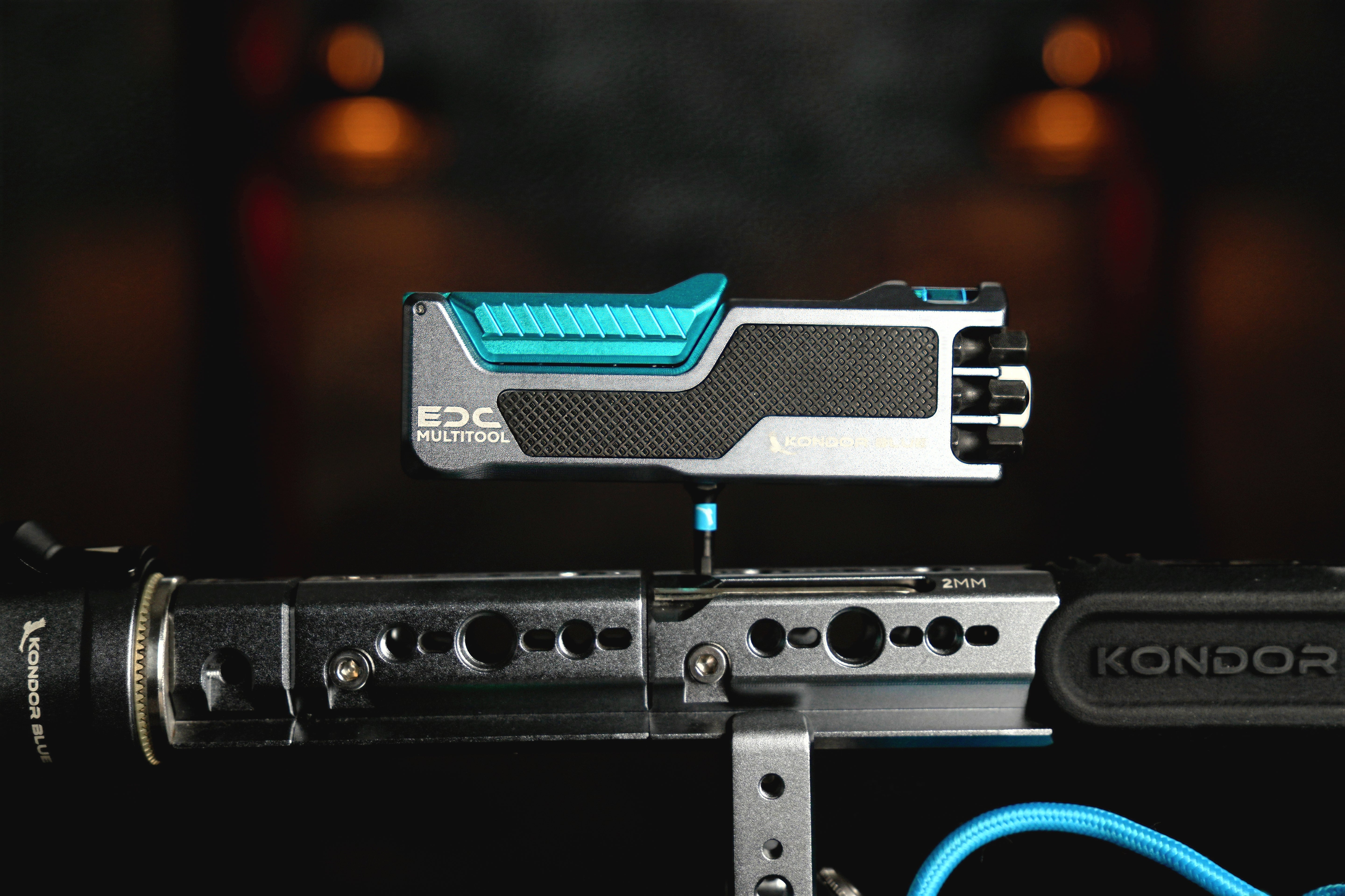 The KONDOR BLUE EDC Multi-Tool is a bit-based camera multi-tool using the ever-popular ¼” shank bits which allows us to maximize the amount of bits you can carry, limit weight, and provide unlimited configuration. Bits are better, period. They’re non-proprietary to the tool and if one of the hardened still bits happens to strip, break, or get left behind, it’s easy to replace.
