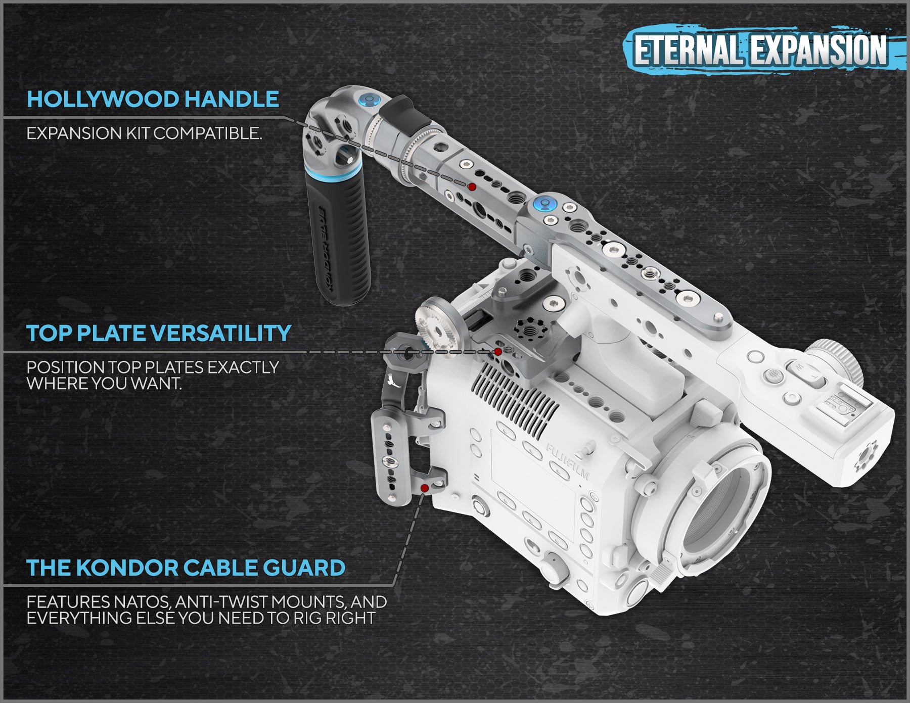 Bring unmatched versatility and precision to your FUJIFILM GFX Eterna 55 with KONDOR BLUE’s fully integrated cage system—designed to maximize comfort, adaptability, and expansion options for serious shooters.