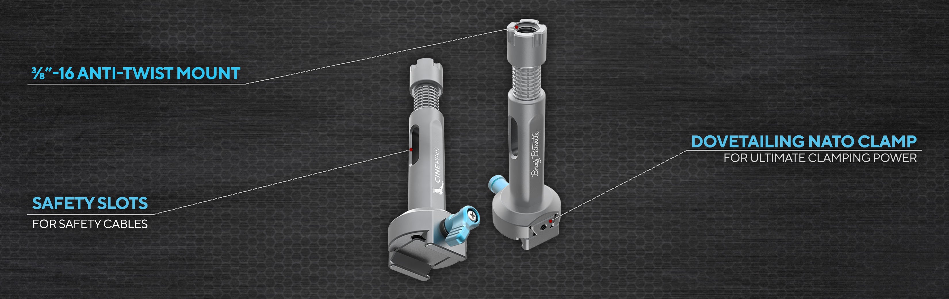 - ⅜”-16 anti-twist mount on the tip of the CinePins