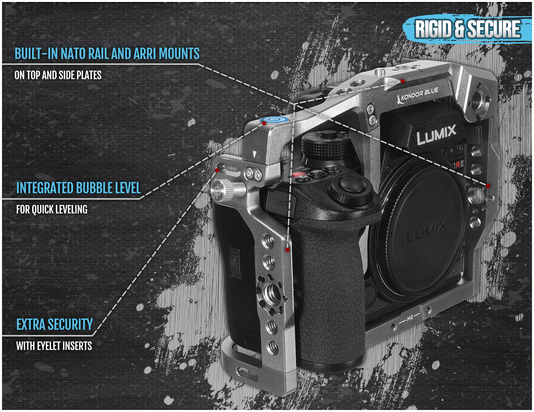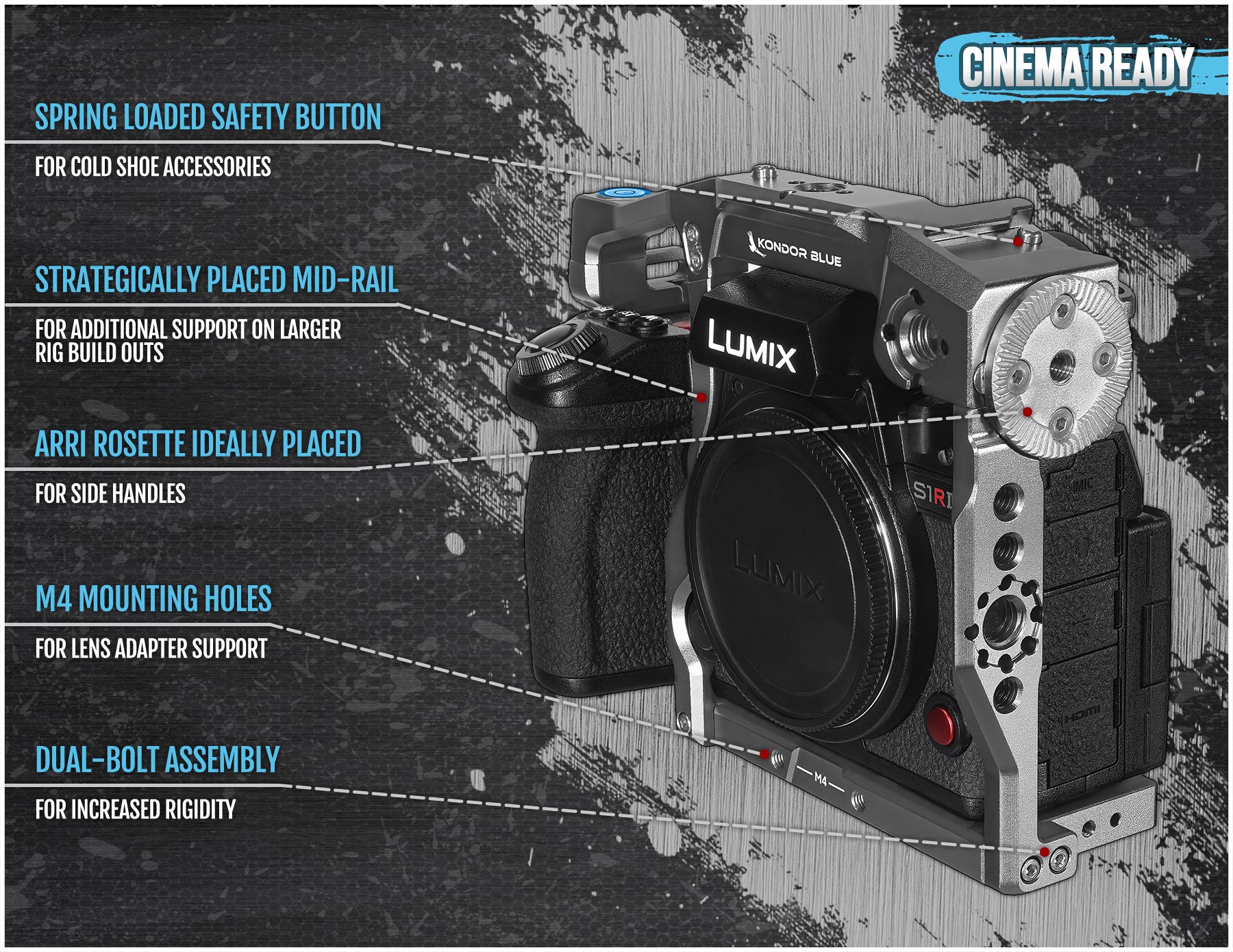 Per usual, the cage comes fully loaded with all the KONDOR BLUE perks–built-in tools, standard mounting holes/patterns, and bubble level. Of course everything is also backed by our lifetime warranty. Designed to protect, amplify, and inspire, the KONDOR BLUE LUMIX S1RII/S1II/S1IIE Cage was made for creators who aren’t looking to compromise.