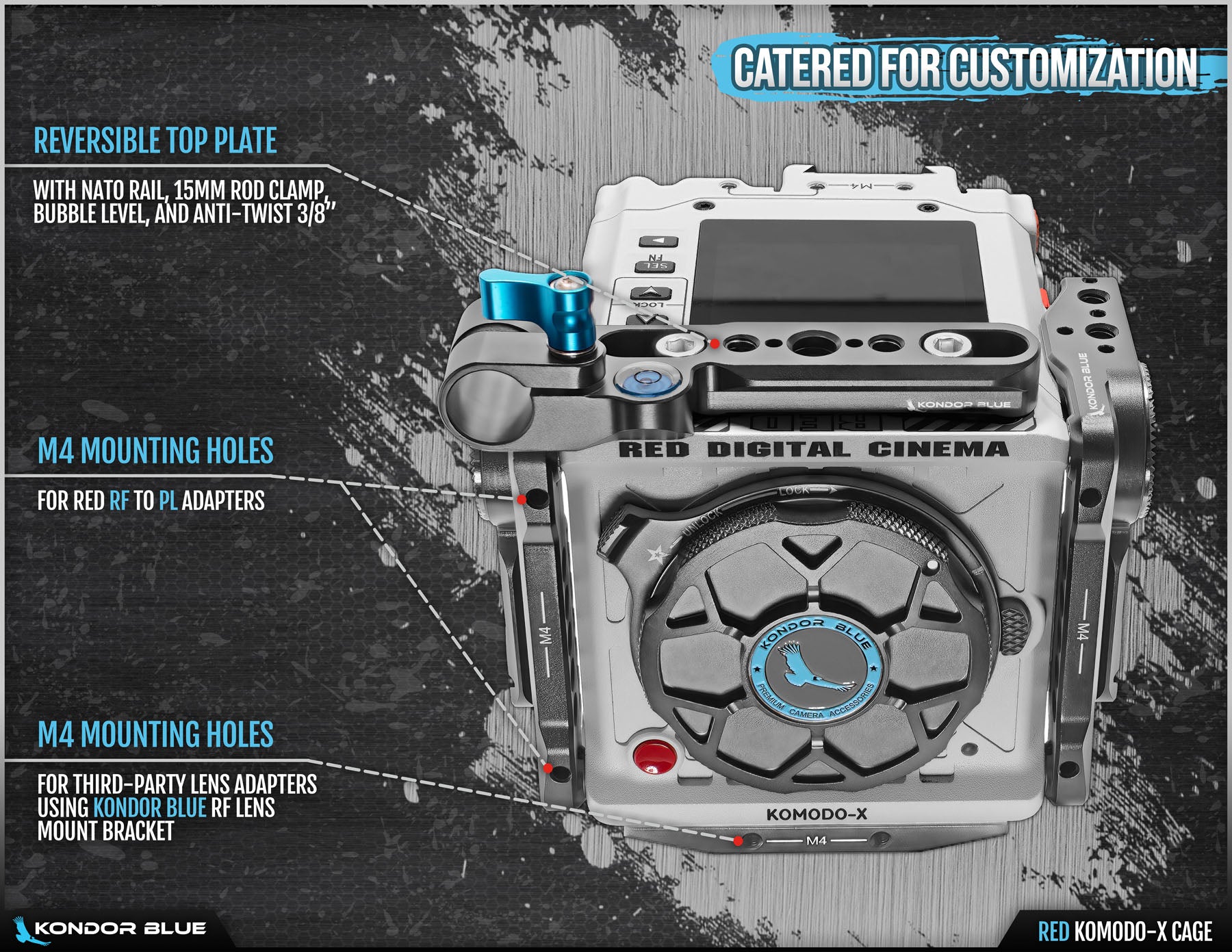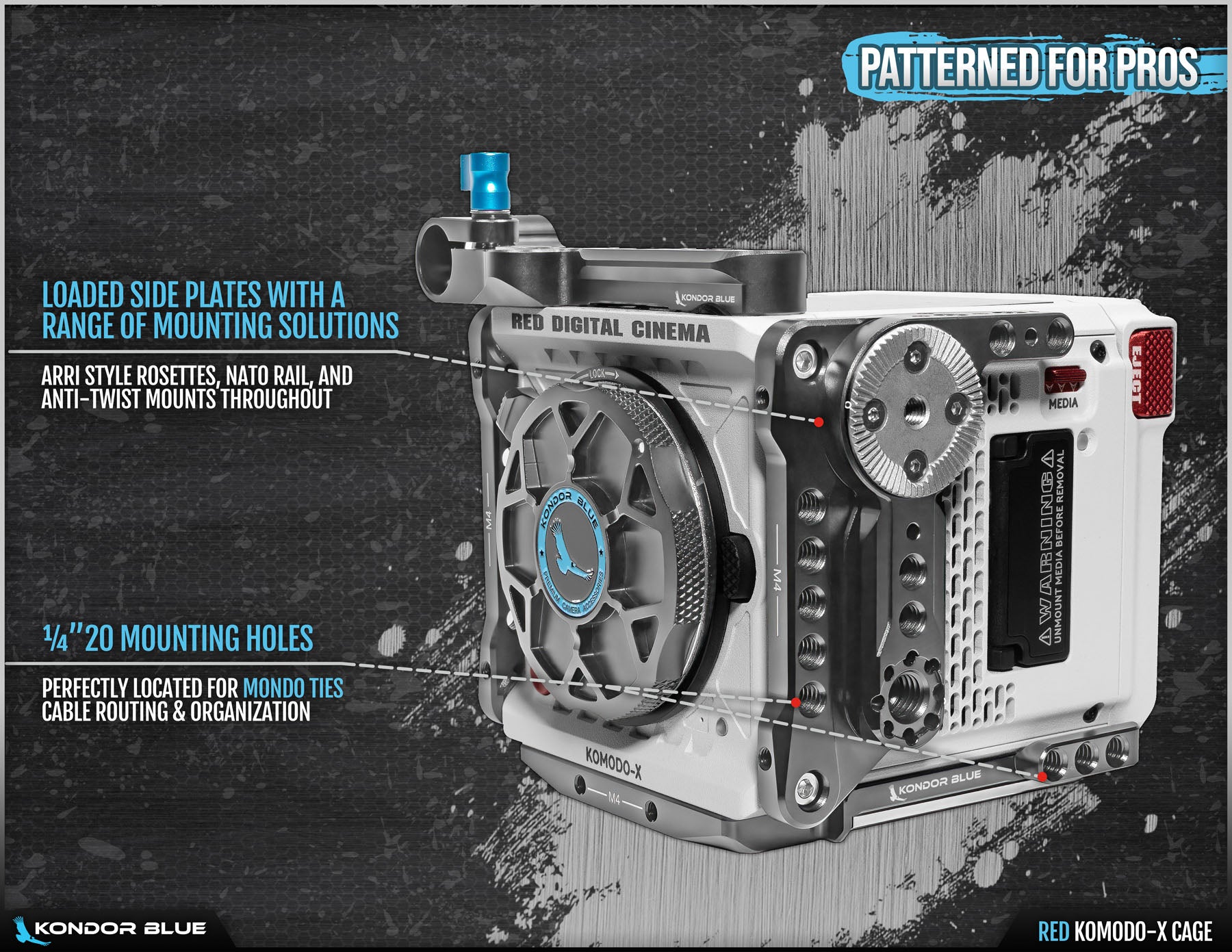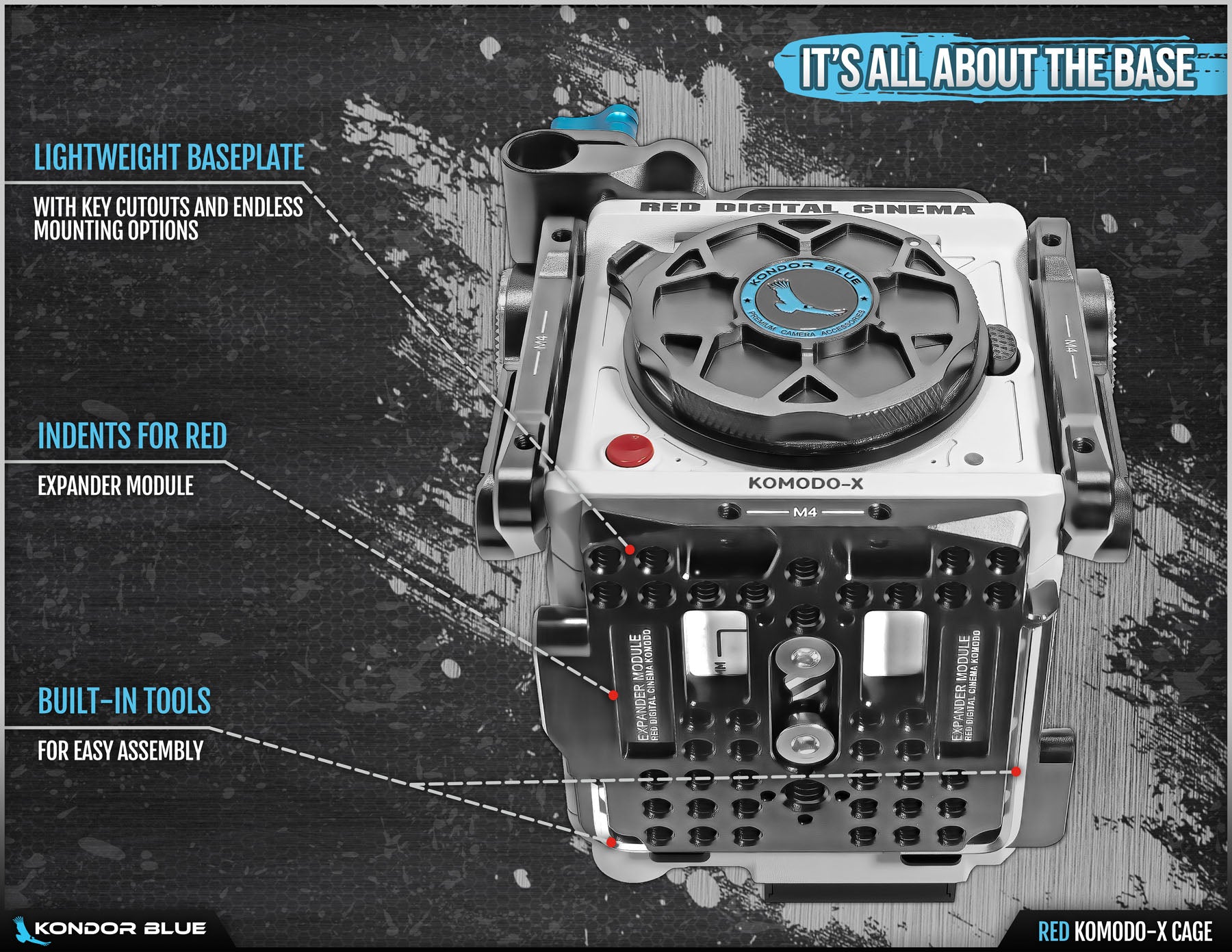 The RED Komodo and Komodo X have been massively popular due to price point, performance, and overall ability to customize. The KONDOR BLUE RED Komodo X Cage was designed to honor and magnify the potential of both the Komodo and the Komodo X.